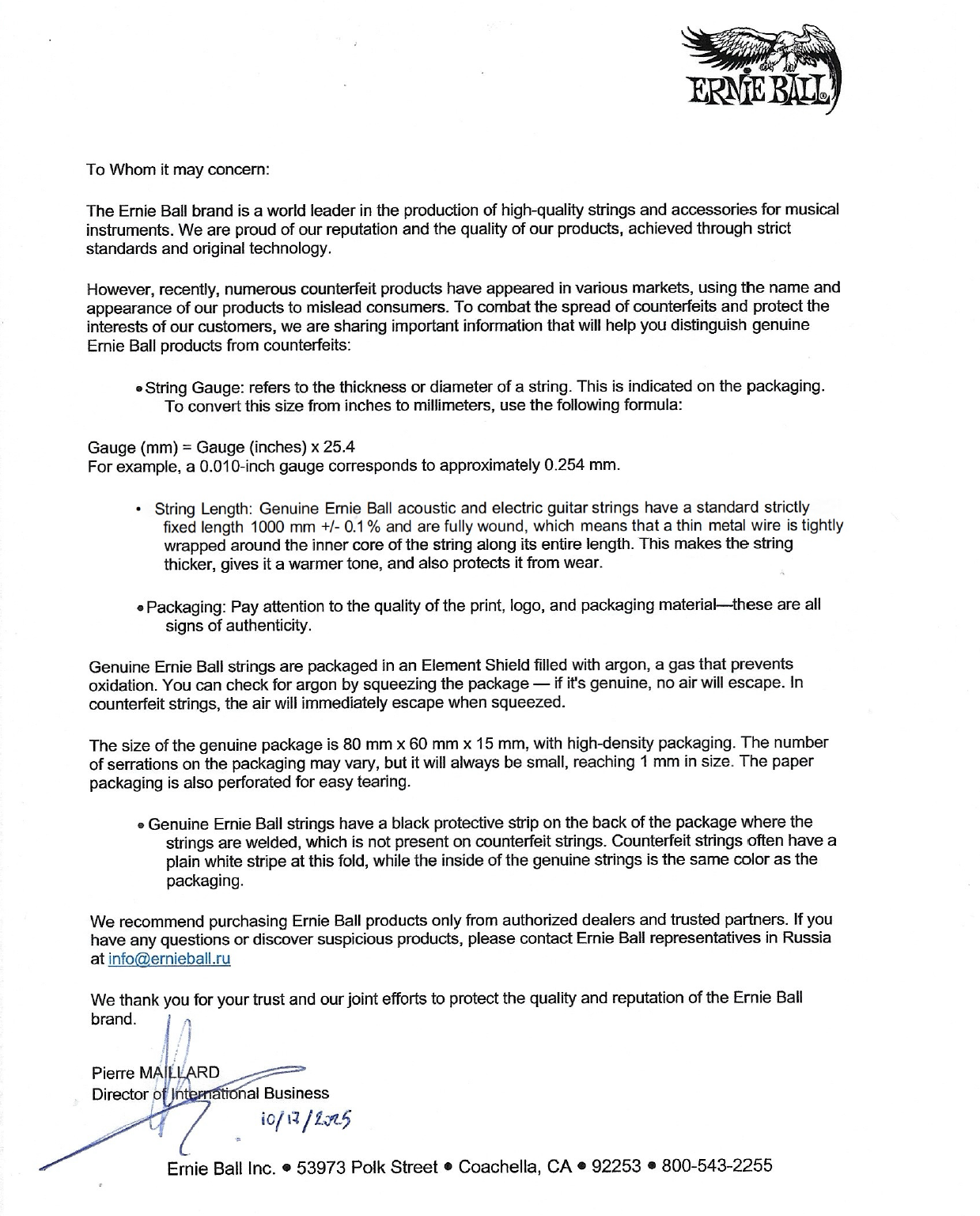 Ознакомиться с оригиналом официального заявления компании Ernie Ball можно здесь.